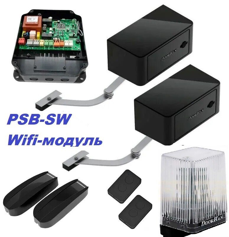 DoorHan ARM-320WIFI-Full комплект для распашных ворот до 800кг и 5м (два привода, блок управления с wifi , 2 пульта, лампа, фотоэлементы)